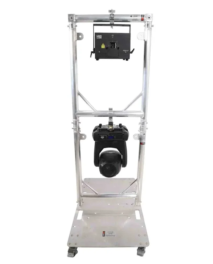 The XT-GRU3024 grid units allow for grid configurations tailored to your needs. You can hang up to10 grids beneath each other for custom layouts. The hanging frames are built from durable EN-AWT6 6082 aluminum frames and each grid will fit small to medium-sized moving-head lights. The rolling baseplate is constructed from 10mm AWT6 6082 Aluminum Plate with handle cutouts and multiple drilled stud mounting holes for versatility. The baseplate is designed to work with the XT-GRU3024 grid units but can also be configured to work with F34 trussing products as well. The baseplate casters allow for easy moving of the XT-GRU-PKGX3 from the truck to venue to stage with minimal effort and protection for your lighting devices.