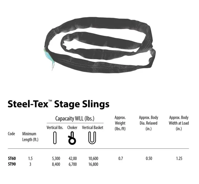 The ProX XT-SLINGR09 is a SteelTex Round Stage Slings with Aircraft Steel Cable Inside 9 Feet. These lightweight roundslings are ideal for easy and inconspicuous suspension of stage sound and lighting equipment. Black sleeve material helps the sling blend into its surroundings. The load bearing member of our Steel-Tex round sling is made of galvanized steel aircraft cable wound in an endless configuration. The wire core is encased in a heavy black polyester cover. A unique inspection window with a velcro closure is located beside the capacity tag. This wide window allows for easy inspection of the core for broken wires or corrosion.