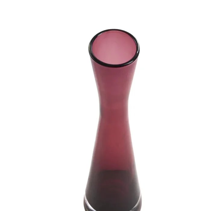 Details: Purple glass vase with a slim hourglass shape