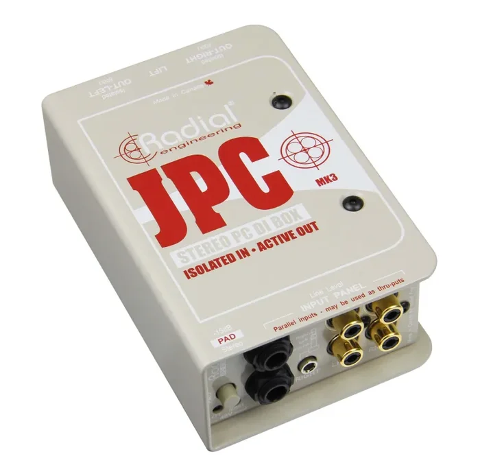 The JPC from Radial Engineering is a stereo direct box that has been specifically designed for connecting computer sound cards and other consumer electronic products to a professional sound system. It combines the advantages of transformer-isolated inputs with an active drive circuit.