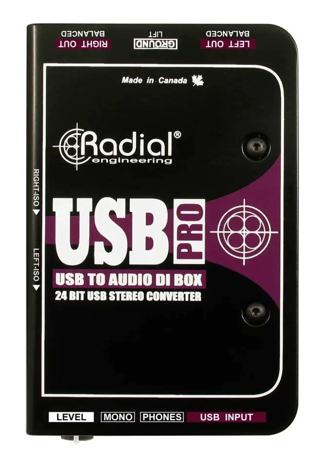 The Radial Engineering USB-Pro is a high-resolution stereo digital audio converter and direct box that is designed to connect to any computer and seamlessly convert digital audio tracks to a pair of balanced analog outputs.