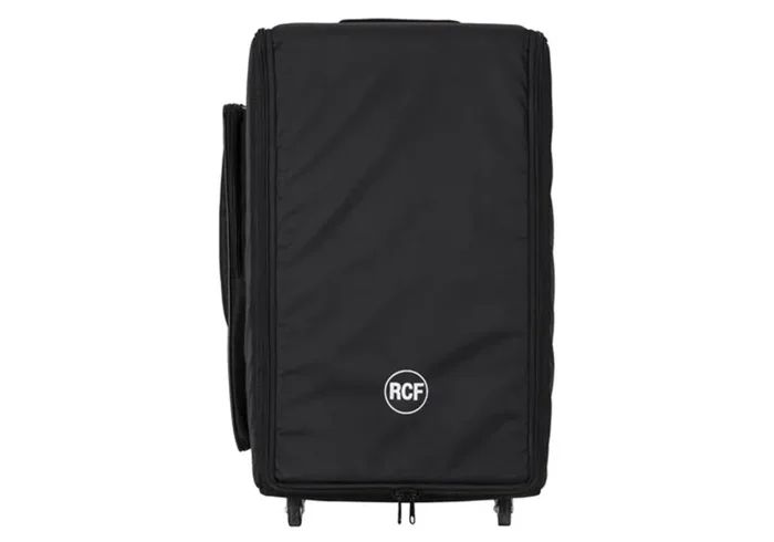 The RCF COVER-WH-EVOX J8/JMIX8 is a durable protective cover designed for the EVOX J8 and JMIX8 sound systems. It features built-in wheels and a retractable telescopic handle for effortless transport. The padded cover shields your system from dust, scratches, and minor impacts, while a zippered closure ensures a secure fit. A large exterior pocket provides convenient storage for cables and accessories, making it an essential companion for mobile DJs, musicians, and live performers.