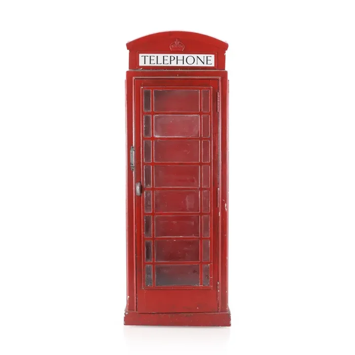 Details: Authentic full-scale telephone booth with working door, no phone. Glass windows on door and left side.