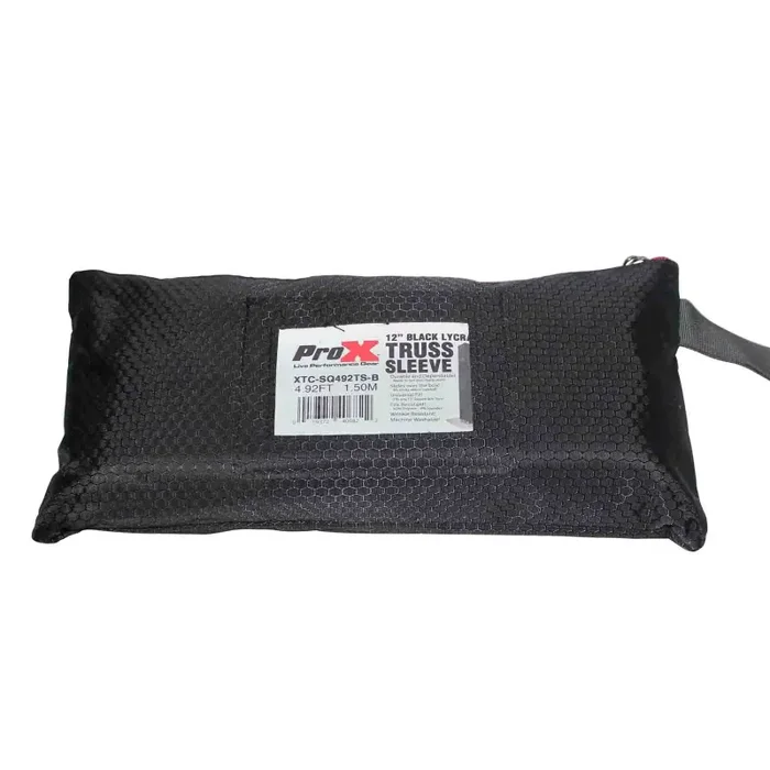 The ProX XTC-SQ492TS 4.92ft 1.50M Truss Lycra ProX Truss Cover Sleeves are designed to fit any 12″ box truss no matter the manufacturer. This ProX Truss Cover Sleeve gives your truss set up a smooth, finished appearance. Depending on your occasion you can add lighting inside or out to instantly create stunning effects. The stretchable Lycra fabric consists of 90% Polyester and 10% Spandex, allowing it to conform to all your edges fitting like a glove on your 4.92 Ft. truss while giving your scene a sleek and uniform look. The Lycra fabric also allows for easy pullover installation and in case you have shorter segment lengths this cover can still be used by merely rolling it under. Truss cover sleeves are very versatile and can be used for all occasions weddings, birthdays, Corporate events, product launches, etc. When done using your truss throw it in the washing machine to get it back to pristine condition, and because of the stretchy material it’ll always be wrinkle-free; air dry is highly recommended. Also included is a ProX zip-up bag to carry your Truss Cover Sleeve.
