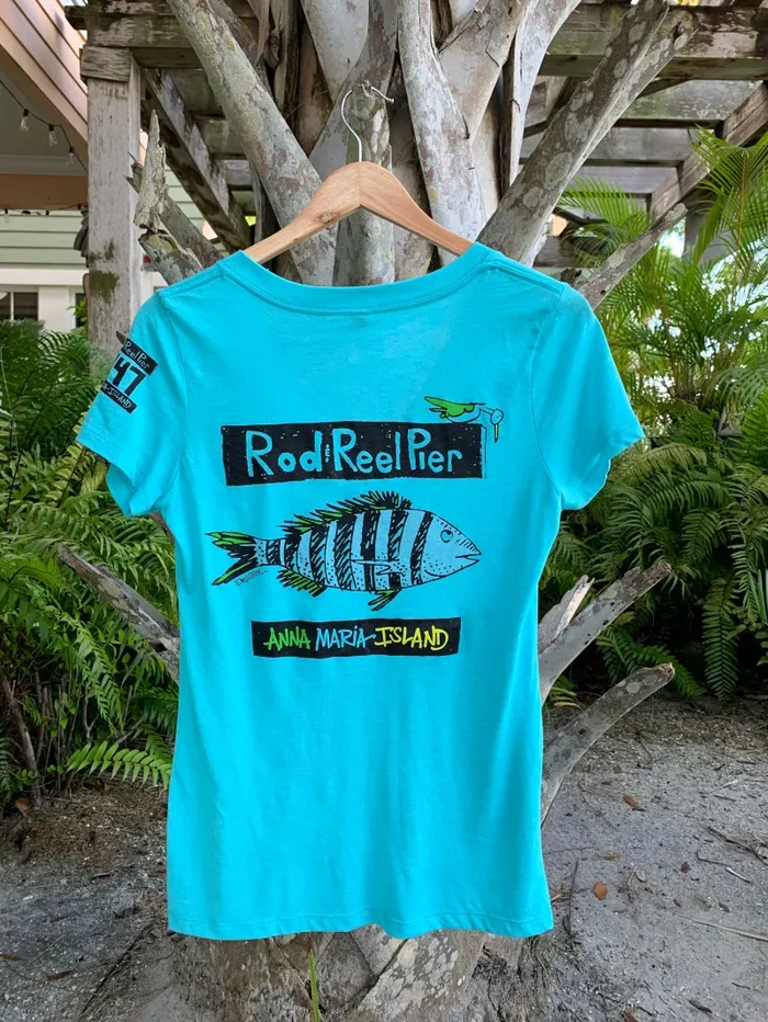 Rod & Reel Pier Womens V-Neck T-Shirt