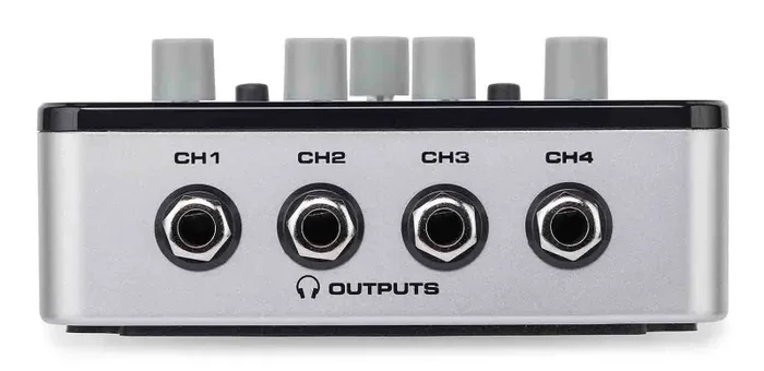 The QH4 features two balanced 1/4″ inputs to connect with your mixer or recording interface, as well as a stereo 1/8″ Aux input that’s perfect for playing music via your smartphone or another line level device. In addition to the four stereo 1/4″ headphone outputs, the QH4 provides a 1/8″ Aux Out that can be used to daisy chain multiple QH4s together.