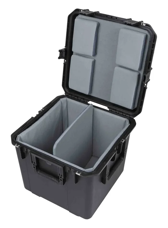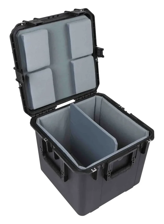 The SKB Cases 3i-1717-16LT Waterproof Utility Case with Padded Liner features a Think Tank-designed, Nylex-wrapped, closed-cell foam liner, a nylon divider, and four Velex-covered foam pads with heavy-duty hook-and-loop tabs to hold all kinds of gear. It is made from ultra-high-strength polypropylene copolymer resin and features a gasket-sealed, water and dust tight submersible design. This waterproof case features a molded-in hinge, a patented trigger release latch system, three snap-down, rubber, over molded, cushion grip handles, and an automatic ambient pressure equalization valve. This case is resistant to UV, solvents, corrosion, fungus, and impact damage.
