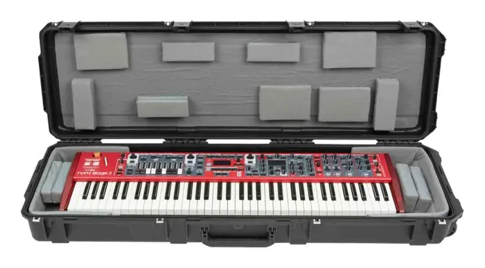 The 3i-5014-TKBD can accommodate such models as the Korg Krome 73, Hammond SK1-73, Nord Stage 3 Compact, and Electro 5D 73. Interior dimensions: 47.5″ x 13.5″ x 4.25″