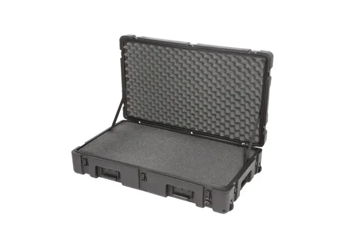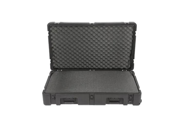 The SKB Cases 3R3821-7B-CW, rSeries Waterproof Utility Case with Wheels and Cubed Foam from is the “big brother” to our 3R3221-7, and includes convenient 2″ wide edge wheels for easy transport. The case is waterproof, dustproof, and has LLDPE polyethylene impact-resistant construction, ABS double-throw latches, and a built-in purge valve. Carry the case with the large folding handles or roll it on the 2″-wide edge wheels.