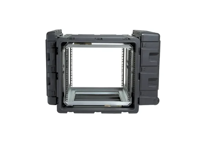 The SKB Cases 3RR-9U24-25B, 9 Unit 24-inch Deep RR Series Shock Rack is lightweight, shockproof, watertight, dustproof, heat and chemical resistant, perfect for protecting and transporting your sensitive electronic equipment. Molded of LMDP Linear Medium Density Polyethylene plastic that meets or exceed MIL-STD 810H standards and includes 8 elastomeric shock absorbers which allows a standard payload range of 40 to 150 pounds. Optional extended payload range of 160 to 300 pounds can be accommodated as a special-order option—must be installed by SKB. The 3RR Series Removable Racks are 24” deep from rail to rail with a standard 19” rack width per ANSI/EIA-310-C specification and feature square-hole rack rails to accommodate either #10-32 US standard, or 6mm International standard cage nuts which are supplied with the cases.
