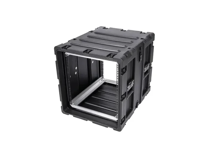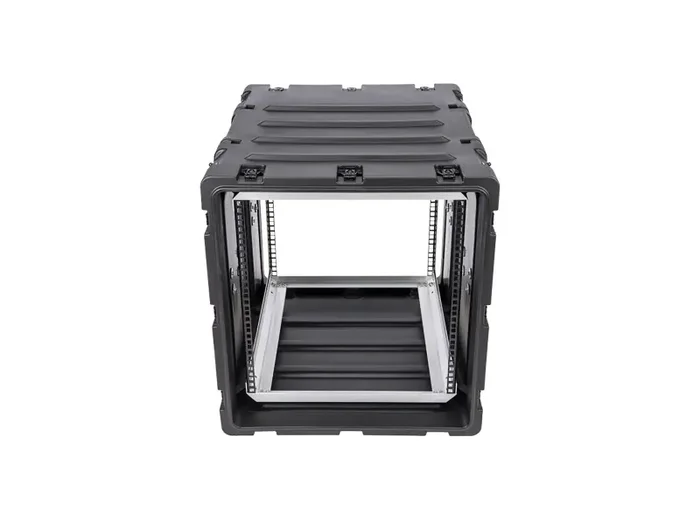 The SKB Cases 3RS-11U24-25B, 11 Unit 24-inch Deep RS Series Shock Rack – Black is lightweight, shockproof, watertight, dustproof, heat and chemical resistant, perfect for protecting and transporting your sensitive electronic equipment. Molded of LMDP Linear Medium Density Polyethylene plastic that meets or exceed MIL-STD 810H standards and includes 8 elastomeric shock absorbers which allows a standard payload range of 40 to 150 pounds. Optional extended payload range of 160 to 300 pounds can be accommodated as a special-order option—must be installed by SKB. The 3RS Series Static Shock Racks are available in 24″ or 30″ deep from rail to rail with a standard 19″ rack width per ANSI/EIA-310-C specification and feature square-hole rack rails to accommodate either #10-32 US standard, or 6mm International standard cage nuts which are supplied with the cases.
