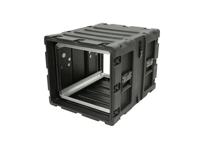 The SKB Cases 3RS-9U24-25B, 9 Unit 24-inch Deep RS Series Shock Rack – Black is lightweight, shockproof, watertight, dustproof, heat and chemical resistant, perfect for protecting and transporting your sensitive electronic equipment. Molded of LMDP Linear Medium Density Polyethylene plastic that meets or exceed MIL-STD 810H standards and includes 8 elastomeric shock absorbers which allows a standard payload range of 40 to 150 pounds. Optional extended payload range of 160 to 300 pounds can be accommodated as a special-order option—must be installed by SKB. The 3RS Series Static Shock Racks are available in 24″ or 30″ deep from rail to rail with a standard 19″ rack width per ANSI/EIA-310-C specification and feature square-hole rack rails to accommodate either #10-32 US standard, or 6mm International standard cage nuts which are supplied with the cases.