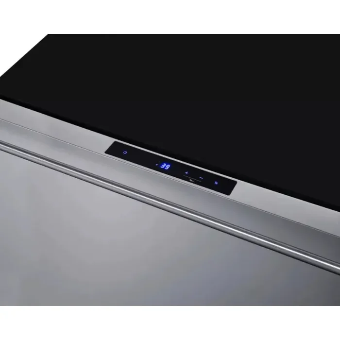 - Electronic controls located on the top drawer ensure easy temperature management, with an external readout of Celsius or Fahrenheit