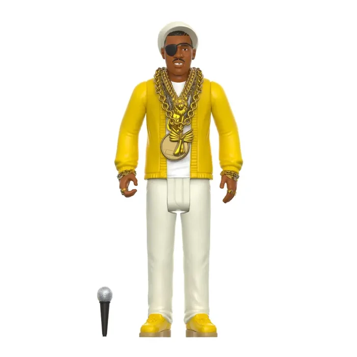 “The merging of high fashion and Hip-Hop may be commonplace these days, but Slick Rick was one of the first to mix street style and high style into a unique new look. This 3.75” articulated Slick Rick ReAction Figure comes with microphone and gold chains accessories and features his signature eye patch. You don’t need to ask the mirror, mirror on the wall who is the top choice of them all, tick-tock and don’t stop until you add the Slick Rick ReAction Figure to your collection of Hip-Hop legends!” – Super7