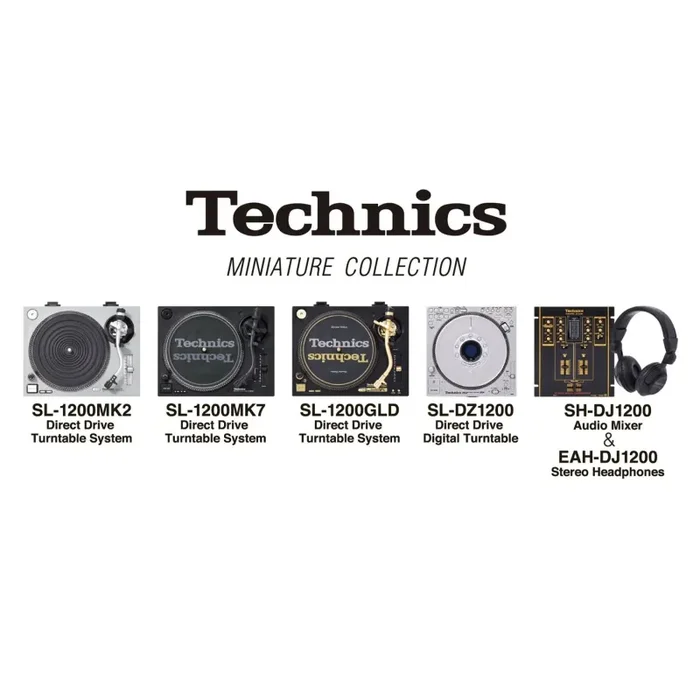 - collect all 5 models: 1. SL-1200MK2 (Technics 1200 MK2 Turntable) | 2. SL-1200MK7 (Technics 1200 MK7 Turntable) | 3. SL-1200GLD (Technics 1200 Gold Turntable) | 4. SL-DZ1200 | 5. SH-DJ1200 & EAH-DJ1200 (Technics DJ Mixer + Headphones)
