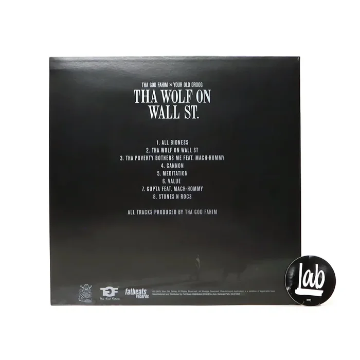 “New York rapper Your Old Droog and Atlanta rapper/producer Tha God Fahim present their latest collaboration in Tha Wolf of Wall Street. While Fahim trades in brass-tacks metaphors, Droog leans more toward punchlines and pop culture-laden double-entendre. Like any effective duo, their contrasting styles dovetail seamlessly on their new EP Tha Wolf on Wall St. The entire project is an assured slice of underground rap, but the pair’s compatibility shines brightest on the title track. Fahim and Droog move back and forth like co-stars on a long-running cable drama, and Fahim’s production provides a more serene mirror reflection. Fahim laces each of the EP’s eight tracks with sedate loops, splitting the difference between his and Droog’s clashing styles.” – Fat Beats