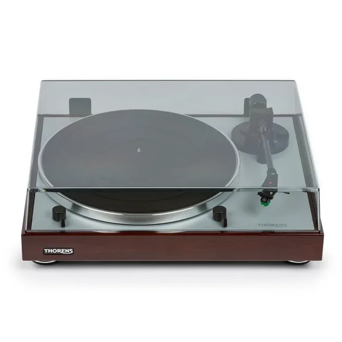 “The Thorens TD 402 DD has a one of our favorite feature sets for an intermediate turntable: a no-fuss, quiet direct drive motor; the popular VM series cartridge, and a convenient auto-stop function. The cap is the great looking 2 piece body with high-gloss wood frame contrasting with the metal top.” – TTL