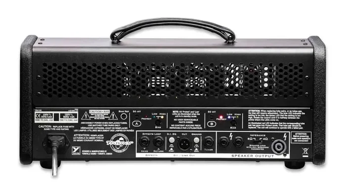 The all-tube Traynor YBA100 100-watt bass head has been designed to be the ultimate tube head for the working musician. LED indicators on the rear of the amp show proper tube function and status. In rare cases where a tube may fail, the YBA100 will lock out the problem tube and its partner, allowing the amp to finish the show on the remaining active tubes.