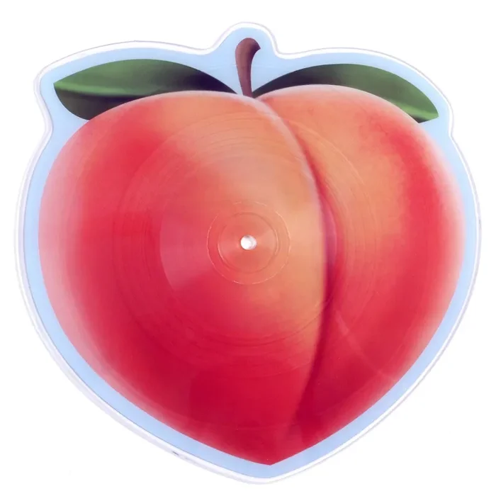 “10-inch, shaped picture disc of Tyler, the Creator “Peach Fuzz” b/w Prophet “Wanna Be Your Man” on Stones Throw Records. Tyler the Creator first came onto our radar circa 2009-2010 when he was a regular on the old Stones Throw Message Board posting music under the name Wolf Haley. Tyler got to know Stones Throw artist James Pants around the same time. When Nardwuar handed him a James Pants record in 2011 he said, ‘he’s awesome, he’s white, and he makes real-ass nigga music.’ Fast forward a bunch of years later and Tyler hears a James Pants mixtape featuring Prophet’s ‘Wanna Be Your Man’ from an album we were about to release. Tyler got his hands on the instrumental version (produced by Prophet, Mndsgn, and Swarvy) and created ‘Peach Fuzz.’ This record contains Tyler’s version on Side A, Prophet’s original on Side B. Design by Jeff Jank, Illustration by Dan Benesch.” – Stones Throw