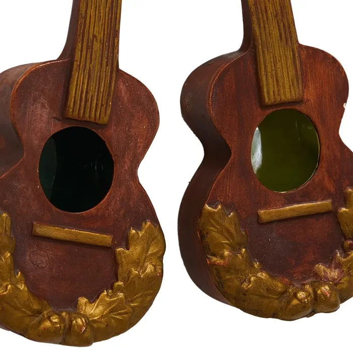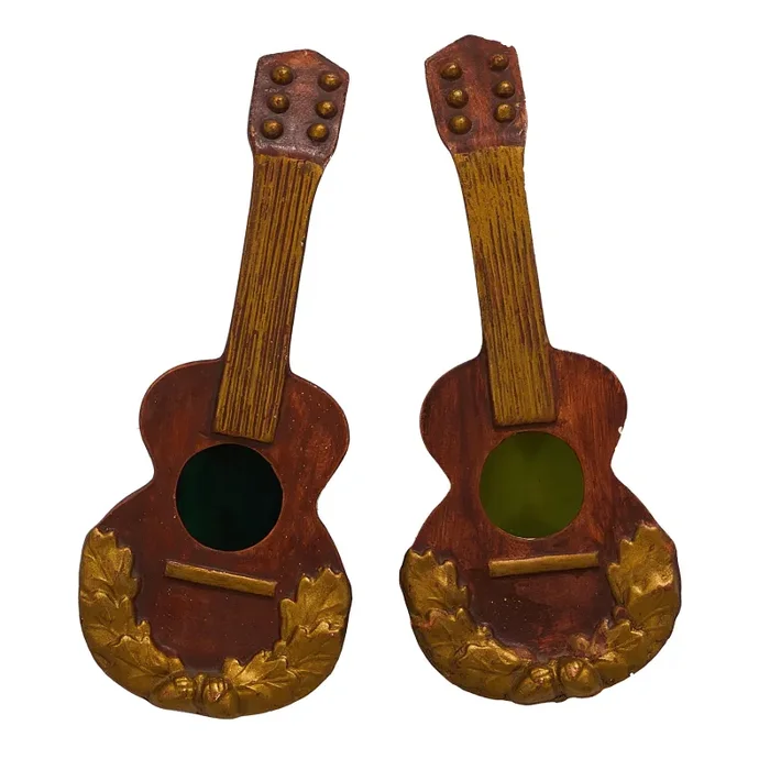 Details: Decorative carved wood painted ukulele wall hanging with black center