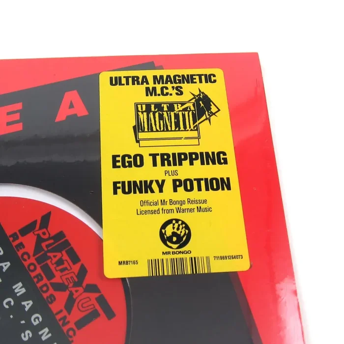 “Melvin Bliss’ iconic ‘Synthetic Substitution’ (1973) has been sampled hundreds of times. Gracing records from Naughty by Nature’s ‘O.P.P’ to Public Enemy’s ‘Don’t Believe the Hype’, it’s one of the foundations of hip-hop. However, there’s a school of thought that says the sample could have been retired forever after Ced Gee used it for Ultramagnetic MC’s’ ‘Ego Tripping’. It was the first song to use those wonderful Bernard Purdie drums, and arguably the best. Their first release on Next Plateau Records, this instant 1986 classic slams from the first bar, that hard-as-hell beat underpinned by stabs and the breathy ‘ultra-magnetic-magnetic’ chant beneath. Meanwhile, Ced and future legend Kool Keith go to town with pseudo-science and a thinly veiled diss of Run DMC – ‘Say what, Peter Piper, to hell with childish rhymes’. It’s a song shot through with promise they’d more than fulfil on their debut album, 1988’s landmark Critical Beatdown. The flip, ‘Funky Potion’, doesn’t coalesce with quite the same genius but is still more than a curio, with the MCs doubling down on their futuristic nonsense approach to lyricism. Rufus Thomas’ ‘Do the Funky Penguin’ is the base for yet more stabs, discordant scratches and a kitchen-sink approach that shows just innovative the group were prepared to be. Never before released before on 7”, this undeniable hip-hop classic comes complete with bespoke hype stickers incorporating one of the great rap logos of all time.” – Mr Bongo