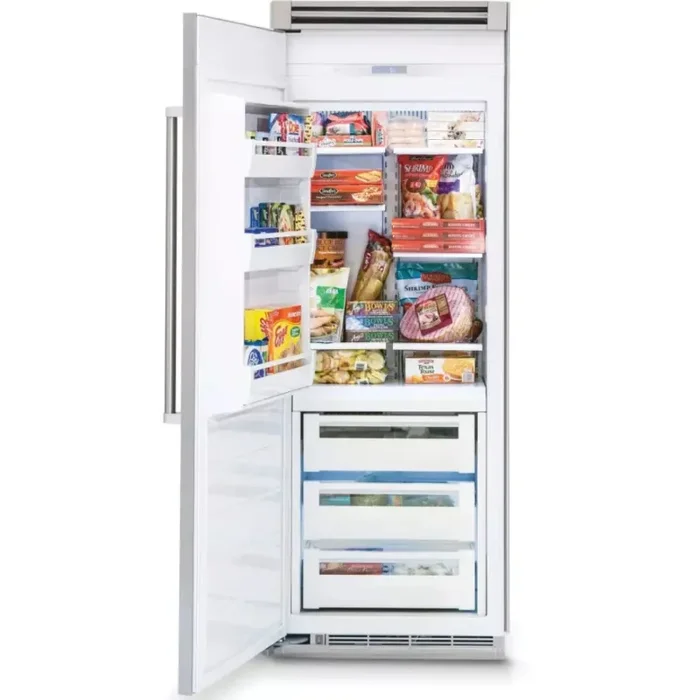 Give yourself the gift of a dedicated all-freezer in your home. This Viking built-in all-freezer offers plenty of storage space for all your frozen food needs. Multi-channel airflow system and Odor Eliminator Evaporator remove odors and excess humidity. Electronic controls maintain even temperatures within 1° F of your selected temperature to keep food fresher longer. LED theater lighting provides easy visibility throughout the freezer so you can see the contents clearly. The factory-installed ice maker and two ice pans provide plenty of ice and ice storage – a must-have for those who love to entertain.