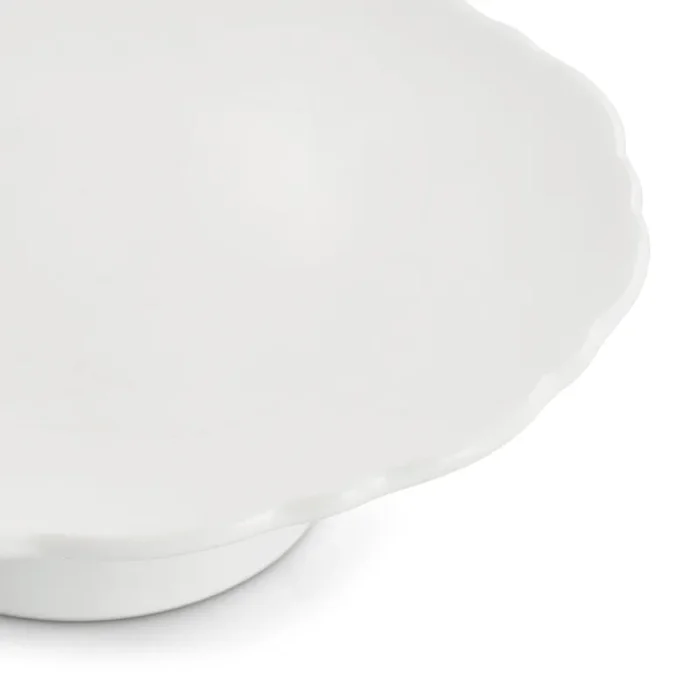 White Ceramic Cake Stand with Scalloped EdgeDimensions: 3.25″ H x 10.25″ D