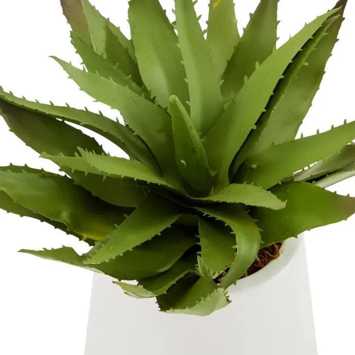 Details: Faux succulent aloe plant in a minimalist white pot