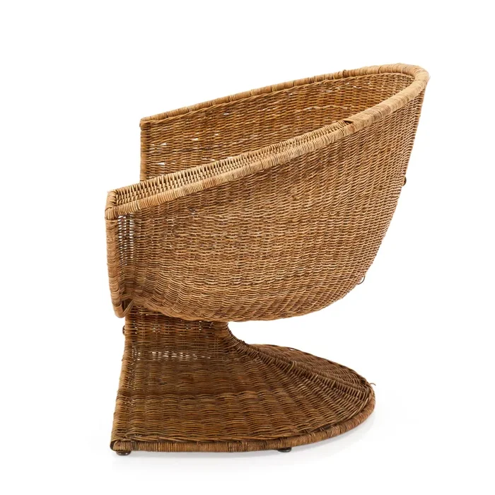 Details: Miller Fong designer, Natural Woven Wicker Scoop Back, with white seat cushion