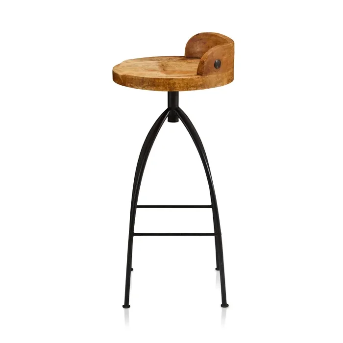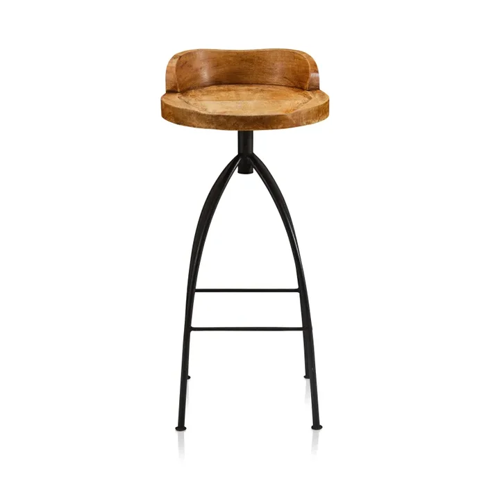Wood & Black Metal Contemporary Stool