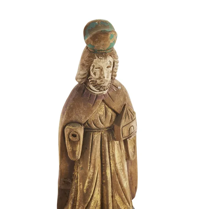 Details: 3 distressed wooden religious statues, possibly the Three Wise Men