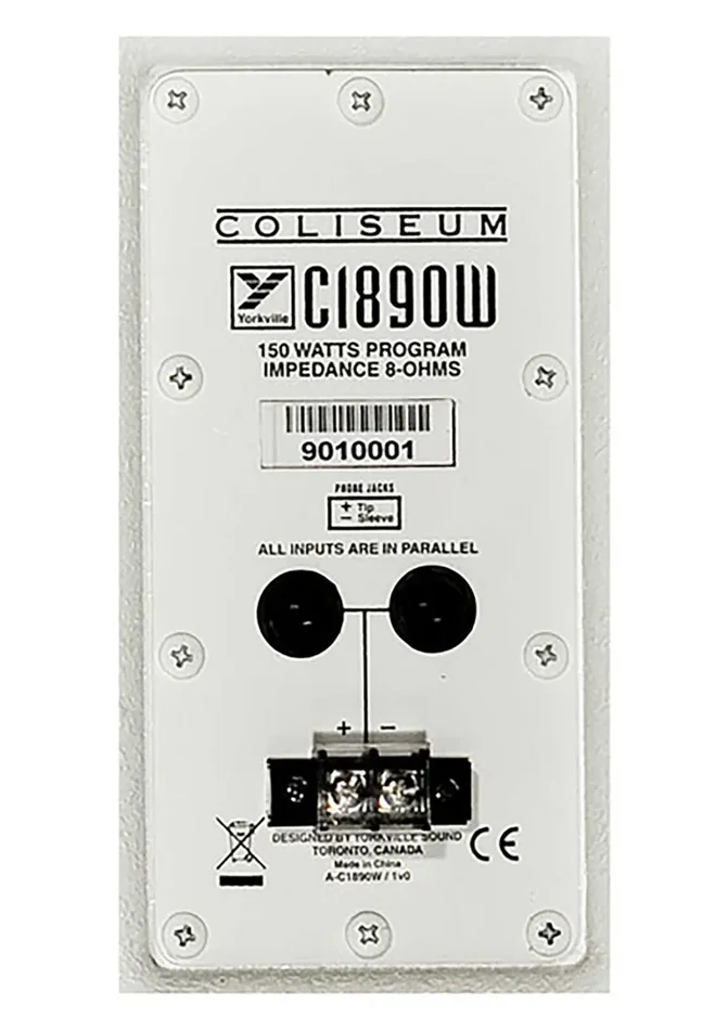 The Yorkville Sound C1891W, Coliseum Series 150 watt installation loudspeaker is the ideal cabinet for a variety of commercial audio applications. The 90 x 30 rotatable 1-inch horn allows the cabinet to be oriented vertically or horizontally. Nine flypoints ensure easy rigging. The C1891 has both binding strip and 1/4-inch jack inputs. All-metal U-Bracket is included.