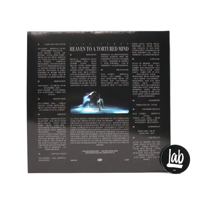 Every couple of years, Warp puts out a record that completely changes the game, allowing an artist to take large risks that pay off ten-fold — this is one of those. Yves Tumor, alongside producers Justin Raisen and Mahssa Taghinia, crafts a kaleidoscopic experimental rock album on Heaven To A Tortured Mind that’s both turbulent and seductive, blurring the lines between R&B, harsh noise, free-jazz, and even britpop at hyper speed. It’s disjointed in the best way possible. Album-opener “Gospel For A New Century” starts off with a Madlib-esque beat and quickly switches back and forth between a laid-back, funky verse. Lead-single “Kerosene!” sees Yves Tumor collaborate with singer-songwriter Diana Gordon, exchanging sweet nothings before the track erupts into a volcanic guitar solo. The double-parter “Romanticist” and “Dream Palette” combines Todd Edwards style chops with samples of fireworks, then completely switches up into an oversaturated, groovy bass line overtop blown-out breakbeats. 12 tracks on black vinyl with gatefold sleeve and download card.